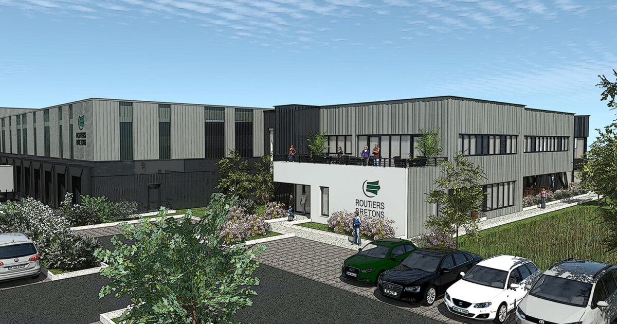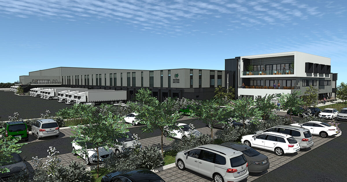 Une nouvelle plateforme logistique de grande envergure est en construction sur un terrain de 53 000 m², à Chartres-de-Bretagne (35). Les Routiers Bretons sont un groupe spécialisé dans le transport, la logistique, le flux tendu et la messagerie palettisée.
